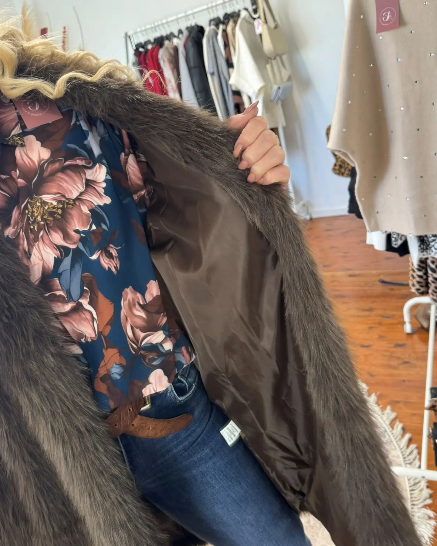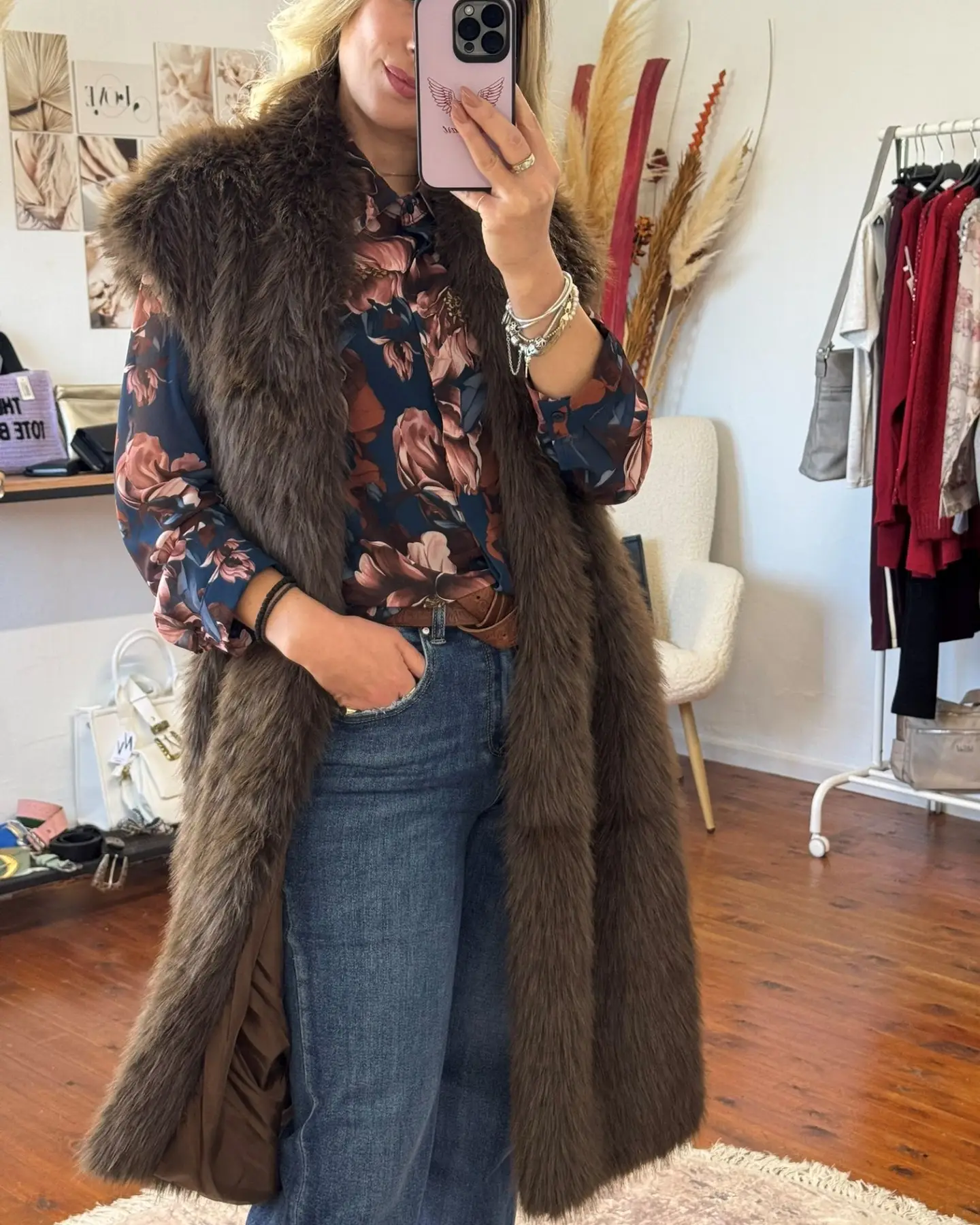 Αναβάθμισε κάθε outfit με αυτό το αμάνικο καφέ γουνάκι.