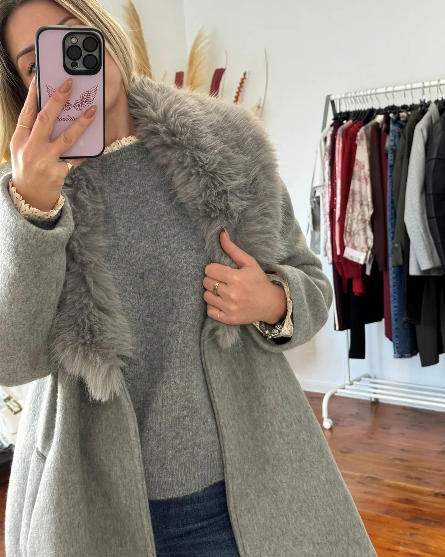 Παλτό Cozy Fur με γούνινο γιακά – One Size