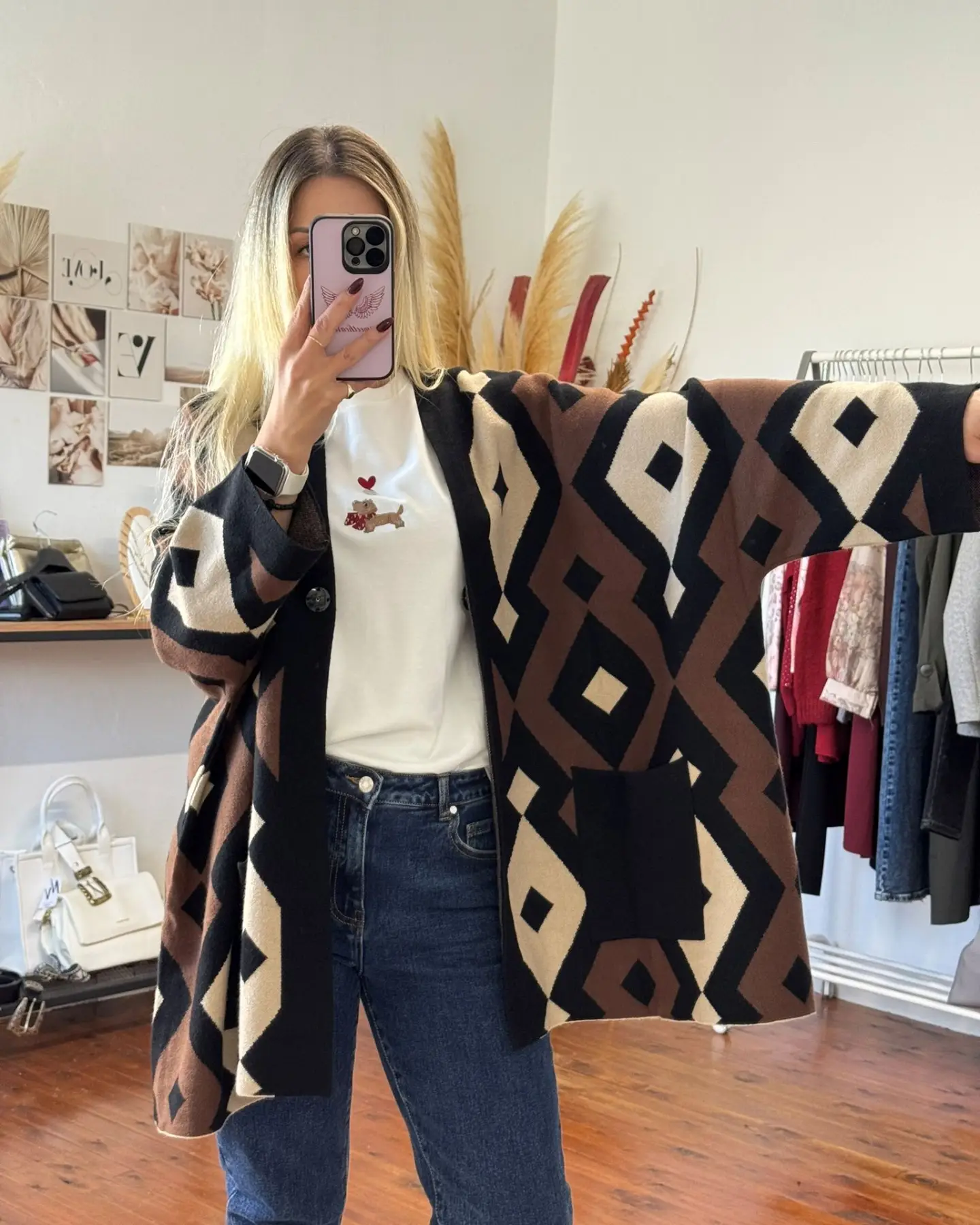 Η πλεκτή ζακέτα “Maya” με γεωμετρικό σχέδιο είναι το cozy κομμάτι που θα απογειώσει τα φθινοπωρινά και χειμωνιάτικα outfits σου.